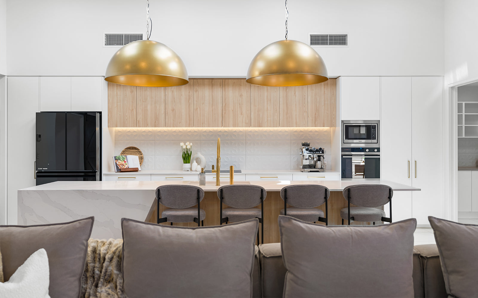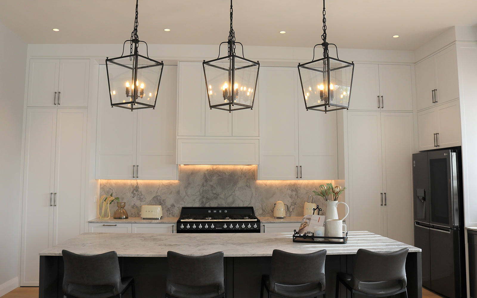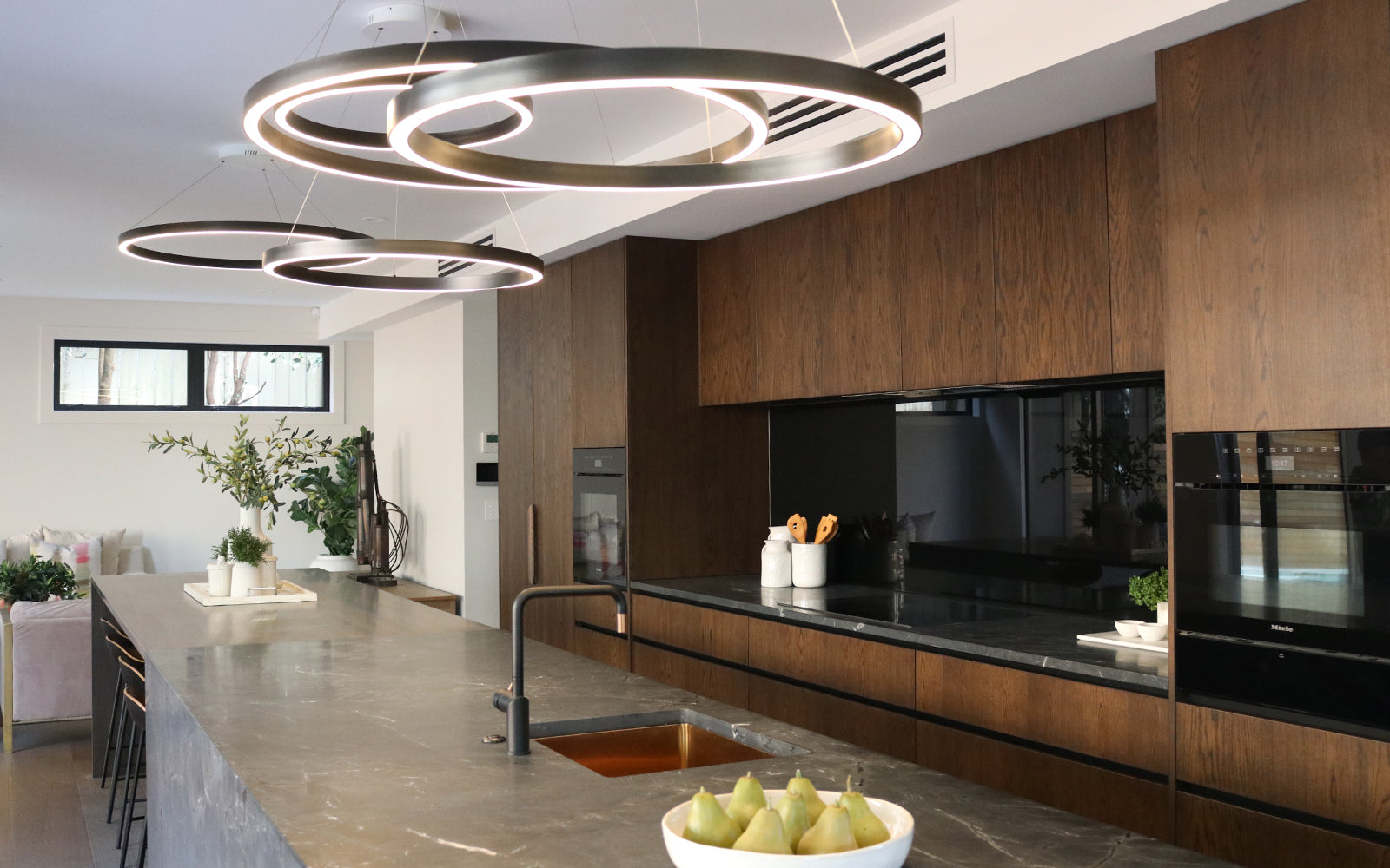 When it comes time to decide on new lighting for a kitchen, both looks and function need to be at the forefront. If you’ve ever tried to work in a kitchen where there are only recessed downlights plonked in the ceiling in the “walkway” space, you’ll know that shadows thrown in front of you can be a terrible enemy. You may even have chopping scars on your hands to prove it.