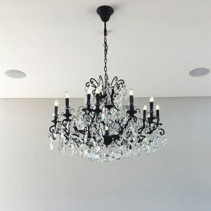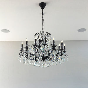 The Albertine chandelier is a classic European-style chandelier, exquisitely detailed. The Albertine chandelier features beautiful premium crystals hung from an antiqued Black Copper finish frame.