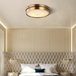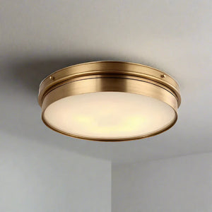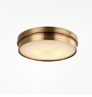 A stunning round ceiling mounted light with a nautical-inspired brass frame. A perfect solution to add beautiful lighting without compromising head height below. Available in a range of sizes.