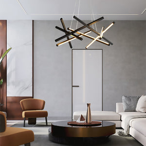 Stylish and modern, this playful light features rods of light in an angled arrangement to add a sense of movement in the space. Matt Black frame with glowing White acrylic diffuser strips.