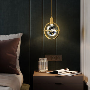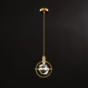 The Pirouette pendant light features a geometric Crystal with an angelic Halo-inspired Brass frame surrounding, which is available in a half or full-circle option. The LED spotlight shines directly onto the top of the Crystal reflecting intricate patterns onto the walls or ceilings.
