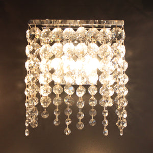 The Athena wall light is part of our customisable chandelier range, designed to co-ordinate with an elegant crystal chandelier. With a Chrome rectangular frame, a wide array of crystal options can be selected to suit your style. Talk to us for more information, or purchase the showroom sample designed in-house.