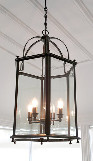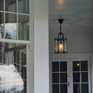 The Essex pendant light is an elegant hexagon-shaped lantern, perfect in a stairwell or over a kitchen bench. With a range of sizes, play with grouping or make a statement with just one. The Rubbed Black finish highlights the edges with soft gold detailing.