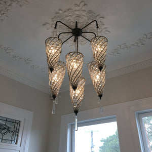9 Light - 800mm Diameter x 1430mm Height + Suspension (adjustable) | 9x E14 bulbs required | Approx. 17kg