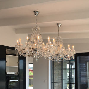 The Isabelle chandelier is the "jewel" of our chandelier collection. It is made of the finest premium highly-faceted clear crystal. The range comes with a number of size options and metal accent options, including two sizes of wall sconces which are a beautiful way to add layered lighting to a room.