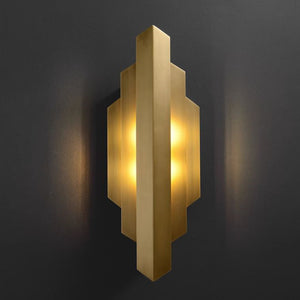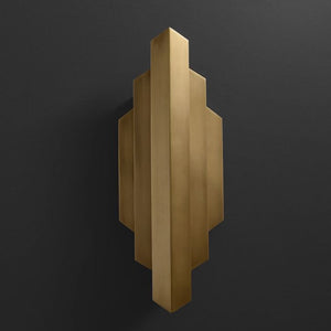 The Odeon wall light is an antiqued Brushed Brass wall light, inspired by Art Deco aesthetics. Back lit with two small G9 bulbs, the Odeon is a stunning wall light guaranteed to add the finishing touch to any vintage-inspired space.