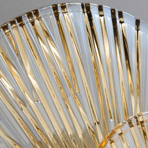 Sunrise is a stunning circular wall sconce made of hand-cast patterned glass with a warm Amber tone. The double-layered centre glows with integrated LED light. A clever way to bring a sense of unique character and design to your space.