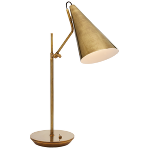 The Clemente by AERIN offers refined angles and sleek detailing while lighting with elegant simplicity. Elongated conical shades provide a modern balance to a mid-century design with antique brass finishes. Any hallway or library will be enhanced with the Clemente, especially behind a favourite reading chair.
