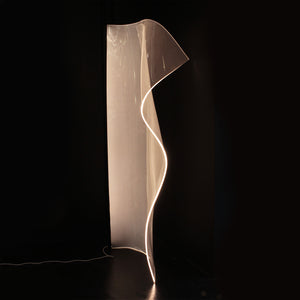 The Cronus floor lamp is a sculptural feature, with rippling hand-formed acrylic that glows throughout, supported by a Matt Black vertical rod which conceals the integrated LED light source.