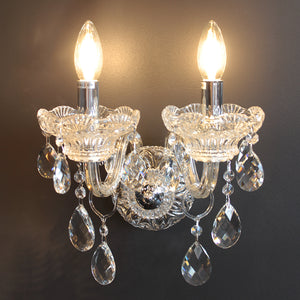 Marguerite is a stunning Crystal chandelier-style wall light that would grace any space. Featuring beautifully detailed cups and ribbed arms, with premium quality crystal and chrome accents.