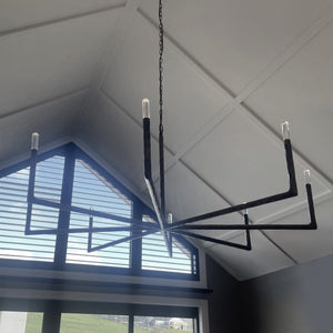 The Kana Round chandelier is a beautifully handcrafted feature light, showcasing a rubbed Blackened Brass frame with glowing crystal ends. The solid brass frame has been hand-sculpted with a textured finish that gives a truly stunning effect.
