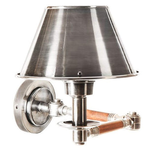 A simply elegant yet unobtrusive wall lamp with an adjustable arm, featuring solid brass details with an electroplated Antique Silver finish and real timber accents. Perfect for the bedside or lighting up a sitting room.