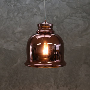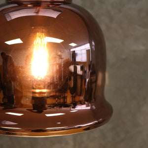 Available in two sizes in Copper glass with coordinating metallic fittings.