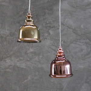 Available in two sizes in Copper, or in Small Gold or Smoke Grey/Silver glass with coordinating metallic fittings.