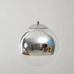Exquisite contemporary glass globe pendant available in a variety of sizes. The top portion of the globe features coloured glass, with clear glass to the underside to allow generous light to glow downwards.