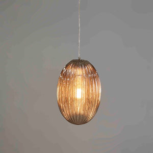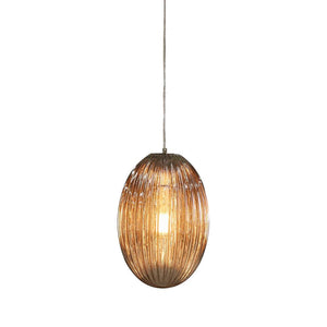 A stunning and unique feature pendant in an oval formed out of coloured ribbed glass. Smoke Grey glass.