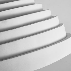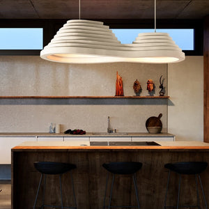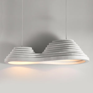 The Colina Long pendant light is inspired by geographical forms, with handcrafted stepping tiers composed into shades. Inspired by Wabi-Sabi design with imperfect forms handcrafted from HDPS composite material with a satin white finish.