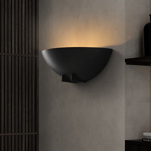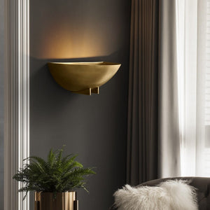 Copa is a minimalist half round wall sconce, lighting the wall with a soft wash of warm light. Available in both Brushed Brass and a Blackened Iron finish, the Copa wall light is a tasteful accent to any room.