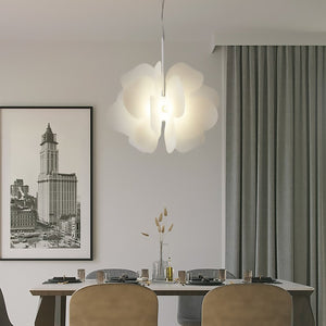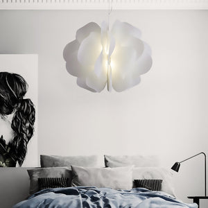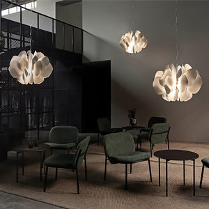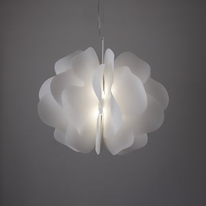 A fun, dynamic pendant lamp featuring organic shapes and forms. The white material diffuses light gently, not unlike a cloud.