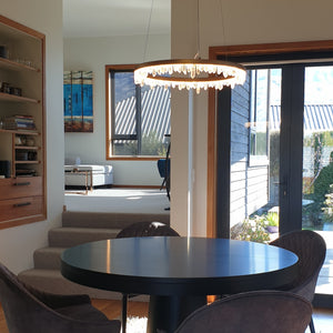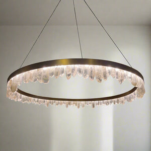 The modern Era pendant will make a feature in any mid-century home, restaurant, or workplace. An Antique Brass finished ring features natural crystals facing downwards, outwards, or upwards from the pendant, held in place with magnetism.