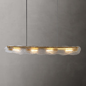 The Felipe pendant showcases stunning handmade textured glass with organic outlines, arranged along a Brushed Brass frame. Felipe echoes natural forms, and is the perfect touch to soften any kitchen, dining, or office space.