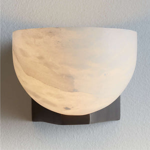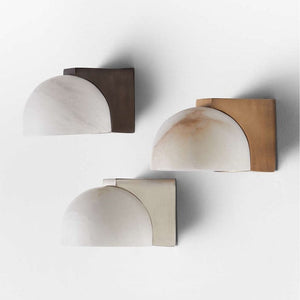 The Femke wall sconce is a minimalist wall light that embraces the handmade touch, featuring a honed Marble stone diffuser nestled into a handcrafted metal sconce. Available in Antique Brass, Bronze, or Silver finish.