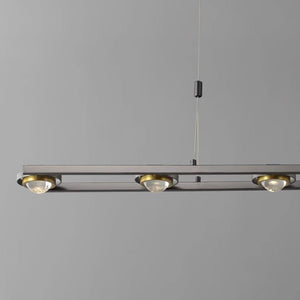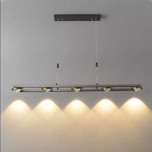Harvey Long is a clean minimalist pendant light with multiple LED optical lens lights. Face these down over the room, or rotate some/all of them to light the ceiling.