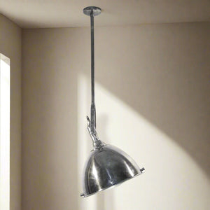 Industrial inspired, the Jack pendant light is equipped with an adjustable arm to position light where needed and a wing-nut clamp that holds that same arm firmly in place.