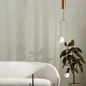 Kiro is a beautifully minimalist range with a contemporary-meets-Art Deco feel. The polished brass curved arms suspend two asymmetrical opaque glass globes with a light, delicate look.