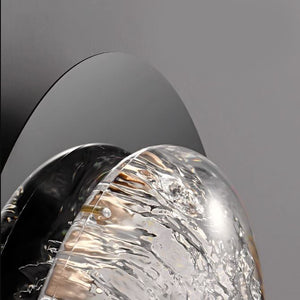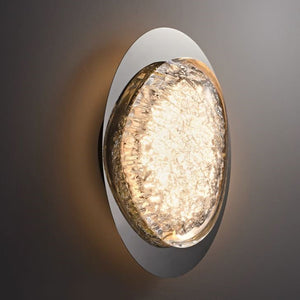 The Morinos wall light range features an optic acrylic with a textured interior that evokes a sense of surging water. Shining inside with warm integrated LED light, the Morinos wall light is available in two sizes with a Gloss Black back plate.