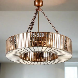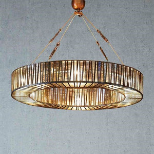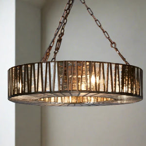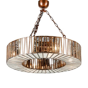 The Oregon pendant light features antiqued 'Mercury' effect glass panes with warm antiqued iron framing in a leadlight-inspired style. An absolutely stunning feature piece with a truly unique flair.