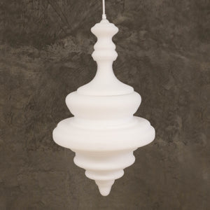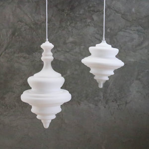 A modern opaque White glass pendant with a classic profile that is reminiscent of turned timber balusters. This is an ideal transitional style to bridge traditional and contemporary design. With a choice of three silhouettes available, Schelp looks sensational as an individual feature or ranged across the kitchen island.