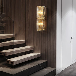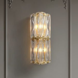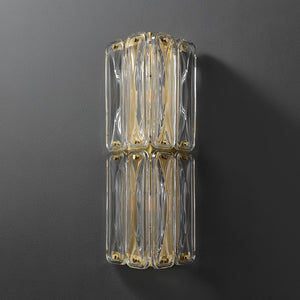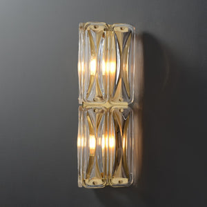 The Simone wall light features softly rippled glass panes with bright brass fittings. Available in both a single and double format.