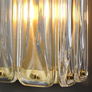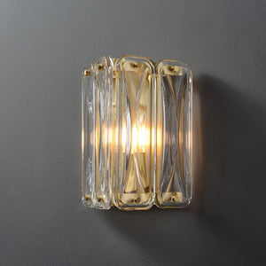 The Simone wall light features softly rippled glass panes with bright brass fittings. Available in both a single and double format.