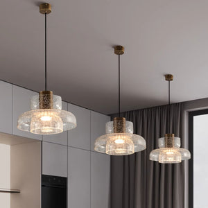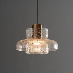 The Split pendant features unique handmade cracked effect glass shades, layered around a central LED fitting. With Antique Brass finish fittings, Split is available in both Clear or Amber glass.