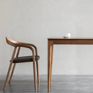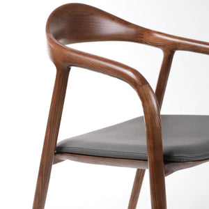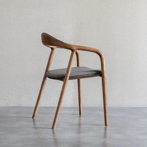 The Sumet dining chair is inspired by mid-century modern design, with flowing timber lines and a soft vegan leather seat cushion.