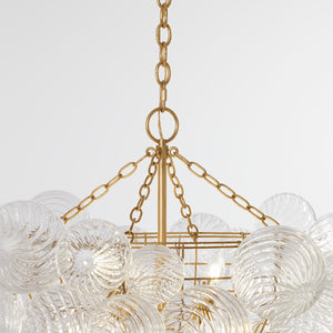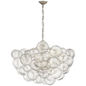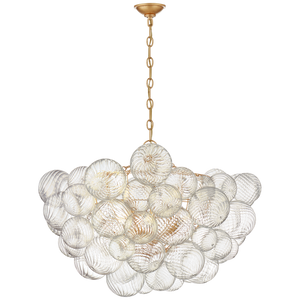 Artisanal glass elevates the Talia series by Julie Neill for a new take on the simple glass globe light fixture. Light shimmers through multiple swirled glass orbs attached to metal baskets, creating a whimsical flourish. Available in a range of sizes and configurations, the Talia series adds a dynamic mix of sparkling glass, rounded forms, and bright metals to any interior. Choose a chandelier for entryways and dining areas, flush-mounts or wall sconces for living spaces or bedrooms, and add a playful, feminine touch to any space.