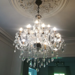 The Hera chandelier is a beautiful classical-style chandelier. The Hera chandelier features fluted arms and bowls with elegant curves, laden with suspended teardrop crystals.