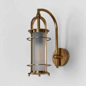 The Rodeo wall light is a gorgeous vintage-inspired feature light, handcrafted in solid brass and handmade frosted glass. Available in unlacquered Antique Brass finish designed to deepen with character over time.
