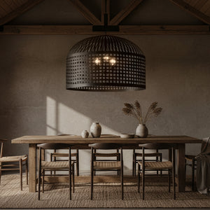 The Ashling pendant light range is a rustic feature with an industrial-style edge, handcrafted with hand-beaten and riveted strips of metal. Ashling brings handcrafted character and style to any space. This oversized piece is designed to hold it's own in generously proportioned spaces.