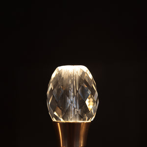 A faceted oval solid crystal bulb with gold fitting. Available in an E14 or E27 screw format.