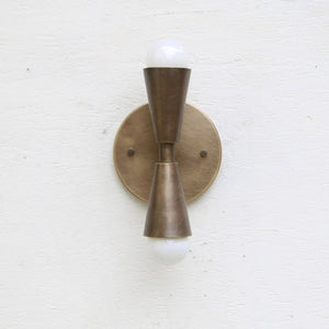 The Elijah wall light is a beautiful feature wall light handmade in brass with a Brushed Antique Brass finished up/down fixture. Add your choice of bulb to personalise the look. Install vertically or horizontally.