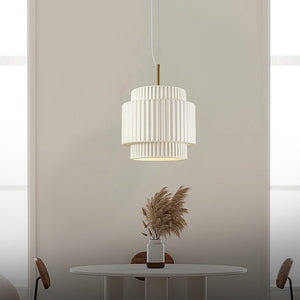 The Fleur pendant is a simple and understated pendant light with classic flair. Handcrafted in a round ribbed shade from HDPS composite material with Gold accents, the Fleur range comes in a variety of colours in pendants, ceiling lights, and wall lights.