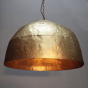 The Gaian Rustic pendant is a unique handbeaten rustic pendant that embraces rough and ready character. The shade is constructed of riveted panels of beaten metal with a rusticated matt Gold finish.