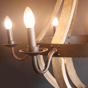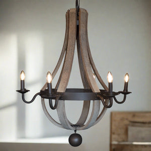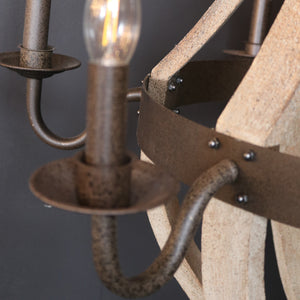 Sarlat is a beautiful distressed wood and iron chandelier that would make a real statement in your space. The ideal accent piece for any contemporary rustic home, and the perfect shape for a vaulted gable room.