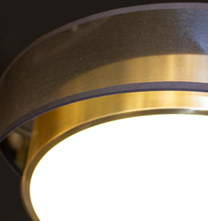 Tapa is a contemporary ceiling mounted light, featuring a round polished brass mount framed by a fabric shade in Charcoal colour. LED light is softened through a frosted diffuser.