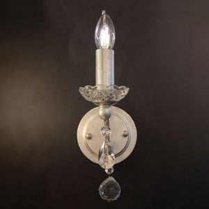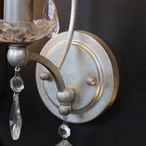 The Versaille wall light is a take on the traditional wall sconce, with a rustic touch. Finished in a rusticated Antique Silver with a cut glass cup and suspended crystals, the Versaille wall light is a beautiful finishing touch to any classic-inspired room.