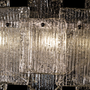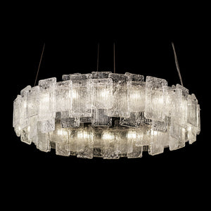 Zuriel is an astounding pendant chandelier featuring handmade textured glass sheets delicately arranged around a circular frame. Zuriel is part of our premium range.